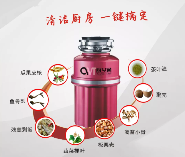 厨卫通垃圾处理器是一种现代化的新型环保厨房电器,主要用于食物垃圾的粉碎处理。在使用过程中,只需将垃圾处理器安装于厨房水槽下,与排水管相连,其会通过小型直流或交流电机驱动二级研磨、三级研磨刀盘,以及新的无刀盘研磨技术,利用离心力将粉碎腔内的食物垃圾进行多次粉碎后直接从下水管道排出。